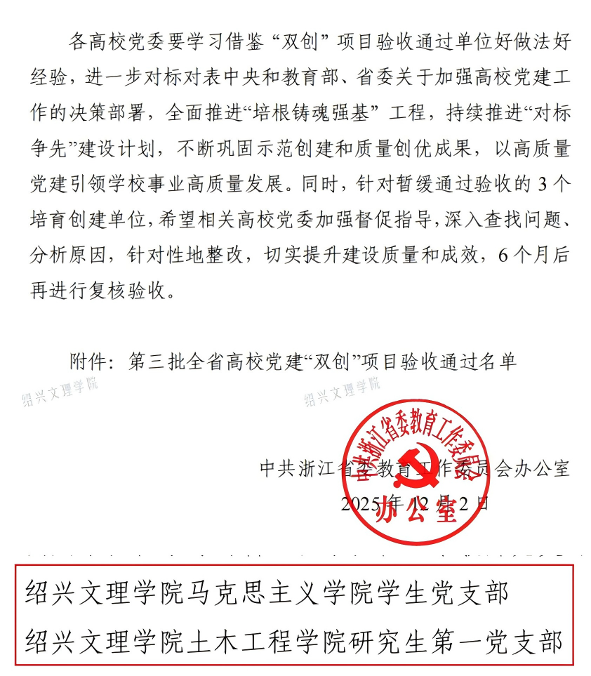 近日,中共浙江省委教育工作委员会公布了第三批全省高校党建“双创”项目验收通过名单,马克思主义学院学生党支部顺利通过验收。